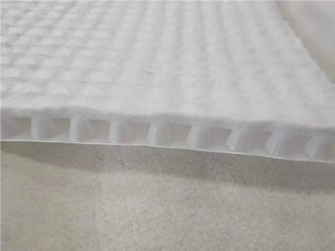 虹吸排水板是由高密度聚乙烯純白原料,在熔融狀態(tài)下經(jīng)真空吸塑一次成型制成,制造出單向的連續(xù)密閉殼體凸起的板狀材料,形成一種膜、殼連接,具有獨立排水空間和一定支撐剛度的防護排水卷材。高分子防護排水異型片經(jīng)專用機型將長效雙抗土工布粘接在凸臺支點上,具有粘合度強、抗剝離度強度高的特點,是國際通用的排水材料。